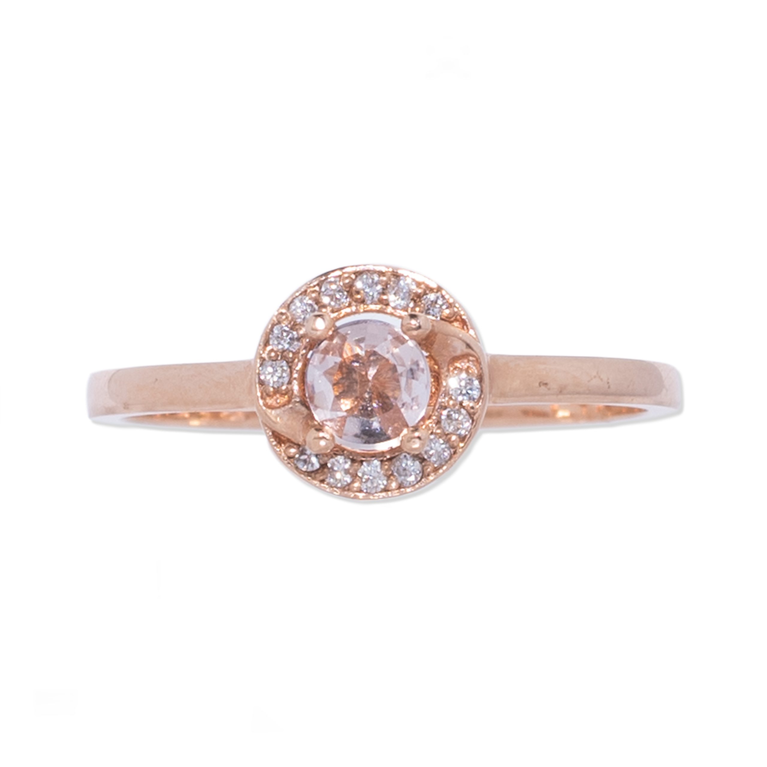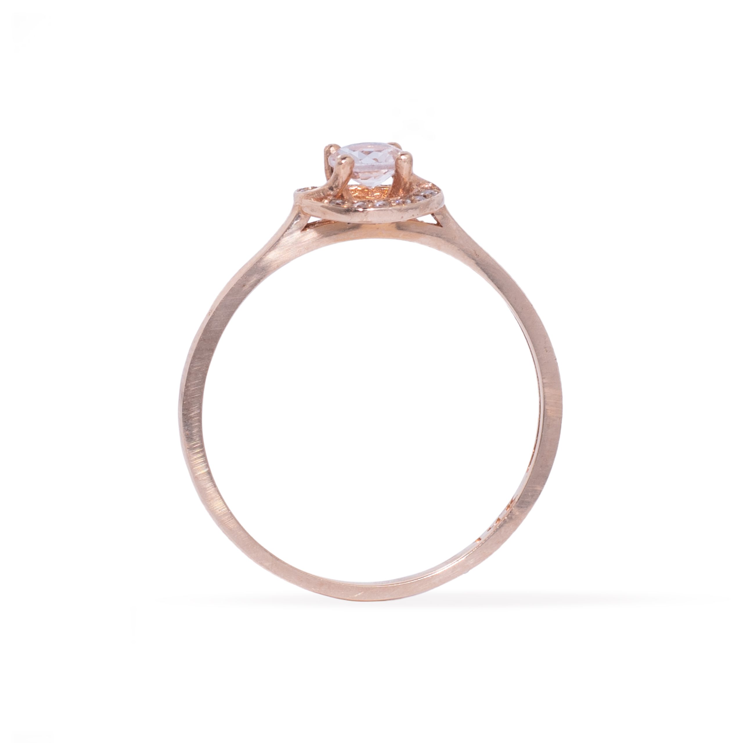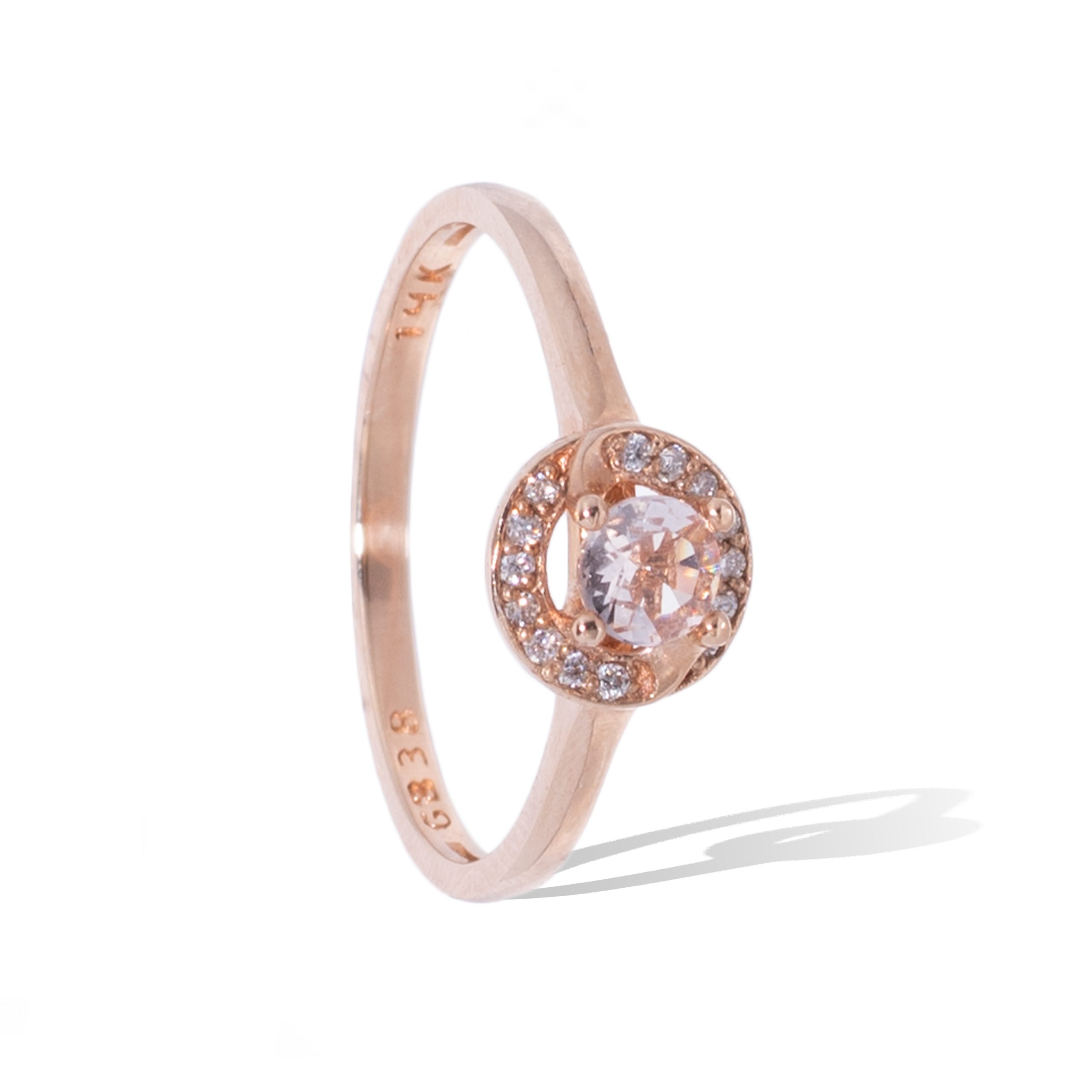 Anillo de oro rosa 14 kts con piedra central Morgonita 0.21 cts acabado pulido brillante