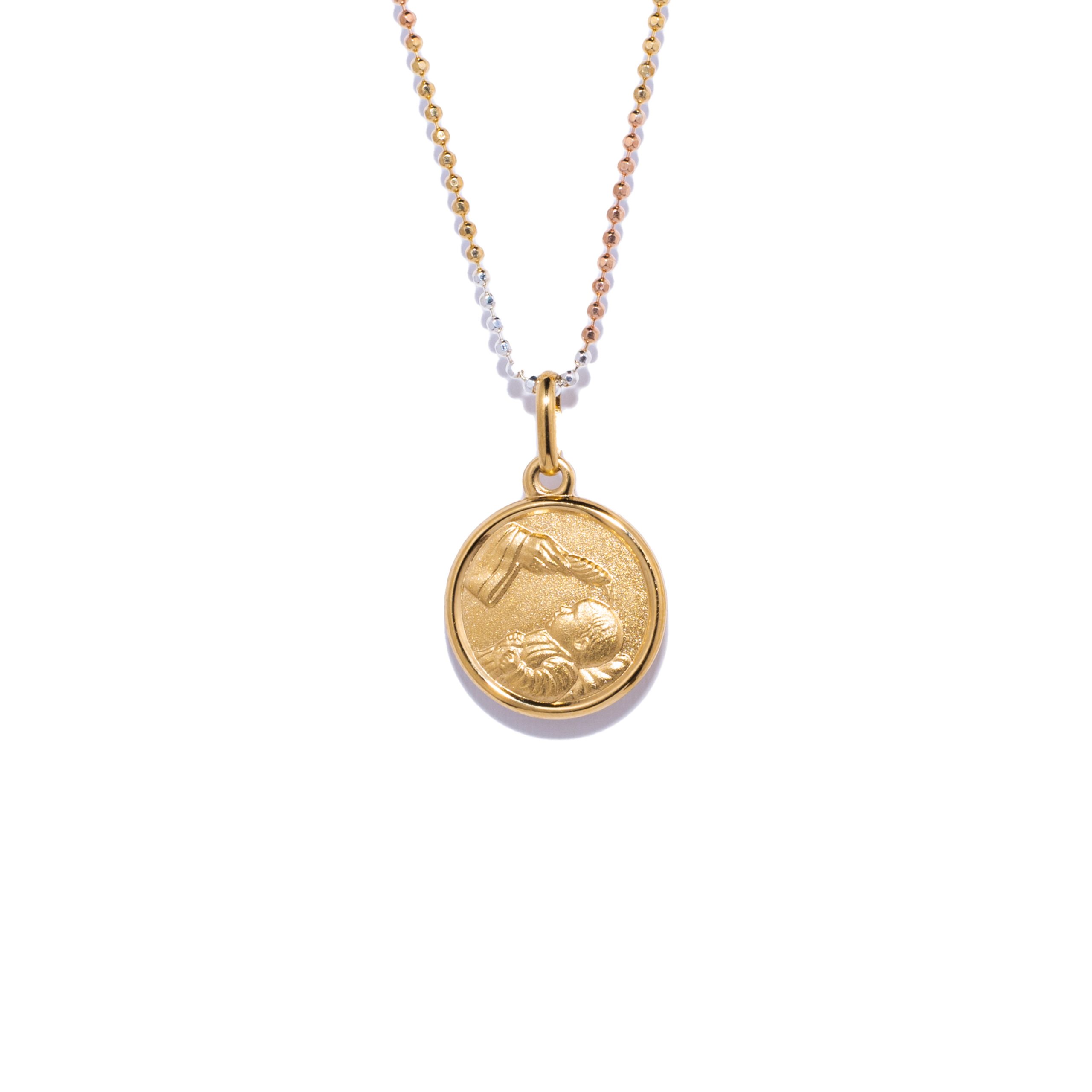 Dije circular Bautizo y cadena de 50cms de plata 925