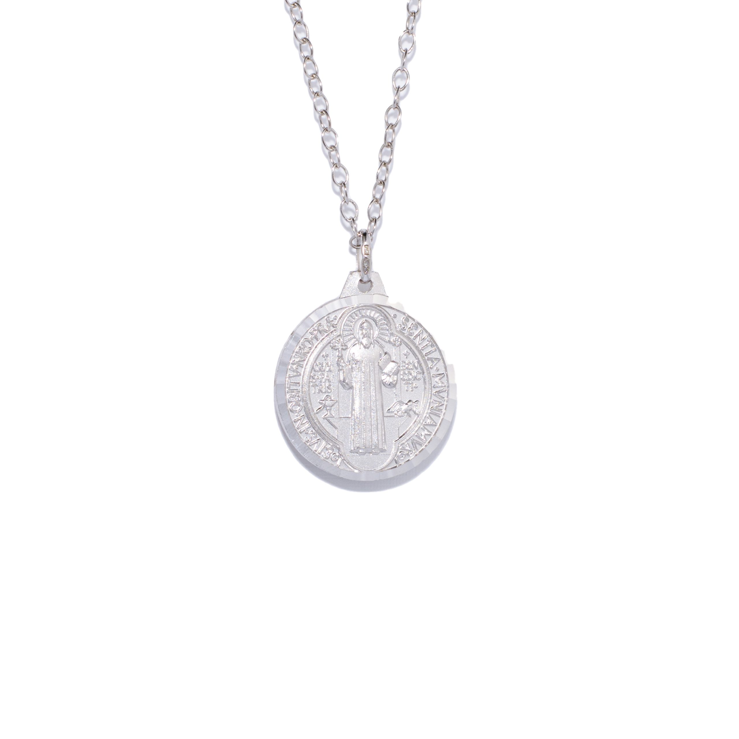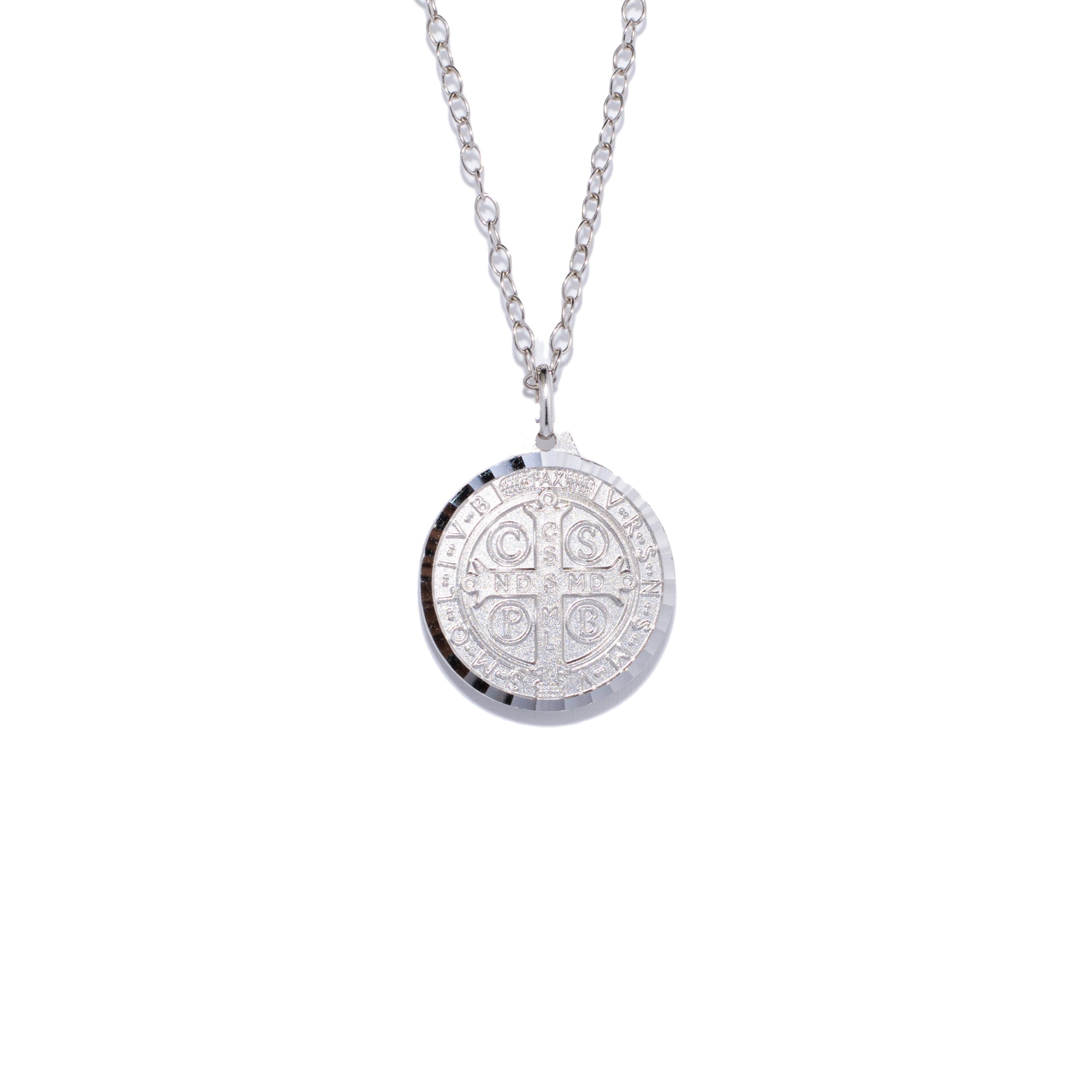 Dije circular San Benito grande y cadena de 50cms de plata 925